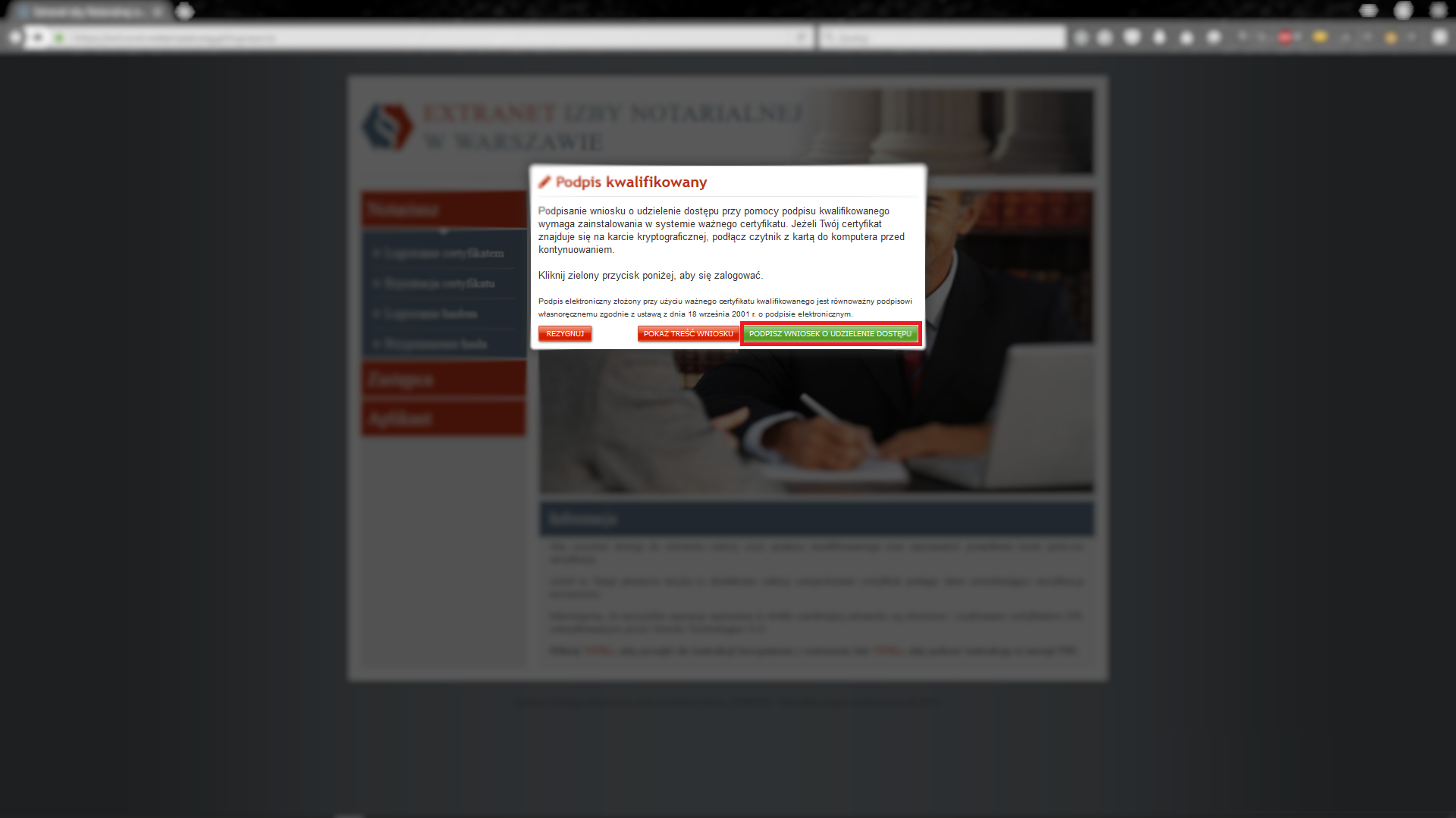 Rozpoczynamy proces logowania przy użyciu certyfikatu.