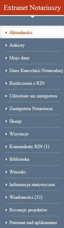 - Extranet – wydzielona przestrzeń do wymiany poufnych informacji pomiędzy Izbą a Notariuszem